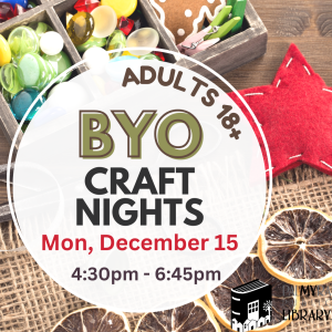 Crafters unite! Join us one week early for December’s session on December 15th from 4:30-6:45pm and bring whatever you’re currently working on. Enjoy an evening with like minded people and share your skills while learning from others. This is not a follow along class and supplies are not provided. No registration required. 18+ only.