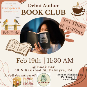 Join us for February’s meeting of the Debut Author Book Club as we read The Correspondent by Virginia Evans. We are excited to discuss this debut novel on February 19th at 11:30am at Book Bar!