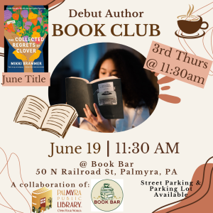 Join us for June’s meeting of the Debut Author Book Club as we read The Collected Regrets of Clover by Mikki Brammer. We are excited to discuss this Lebanon County Reads selection and debut novel on June 19th at 11:30am at Book Bar!